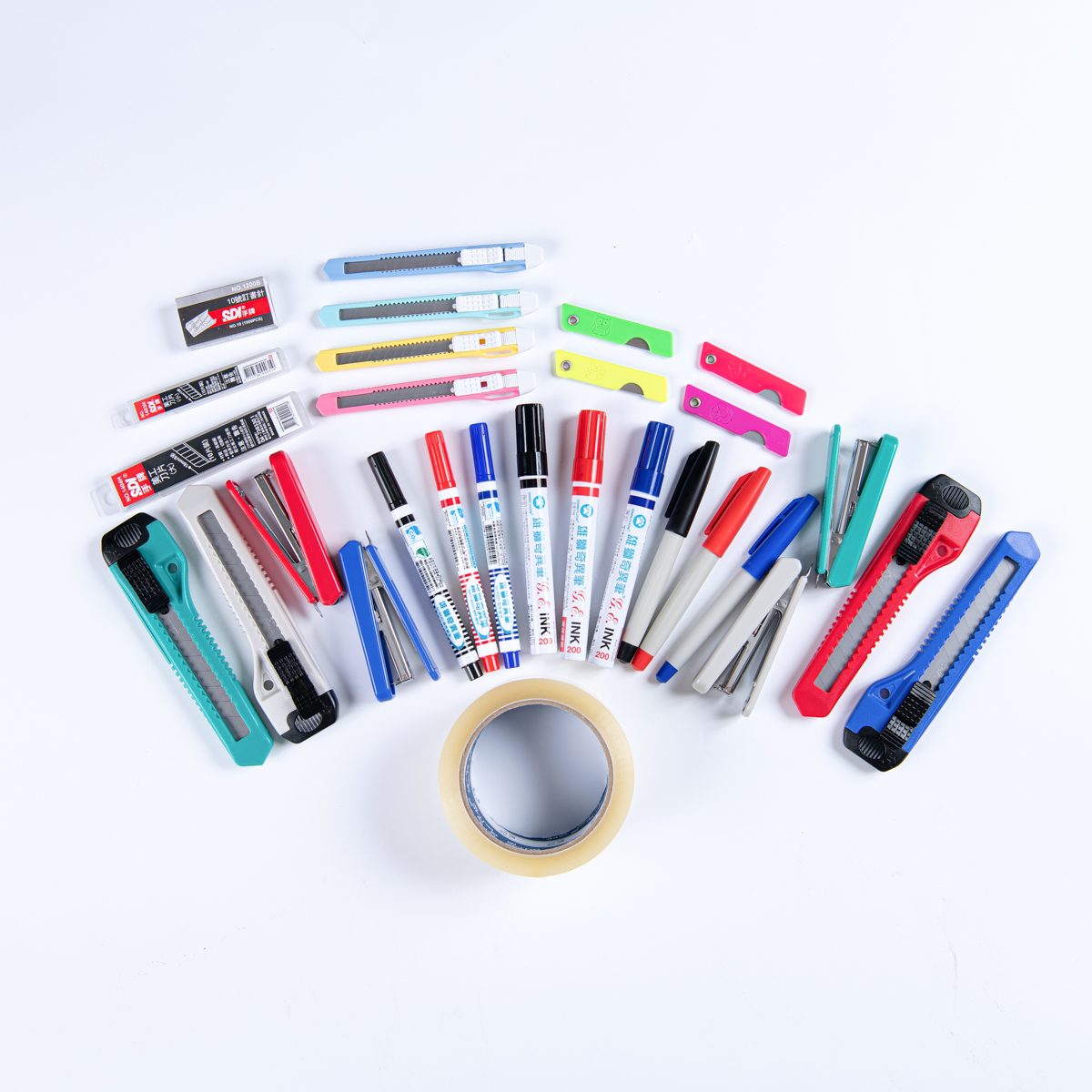 打包物品時,剪刀、小刀、封箱膠帶、麥克筆、OPP自黏袋是必備物品,
